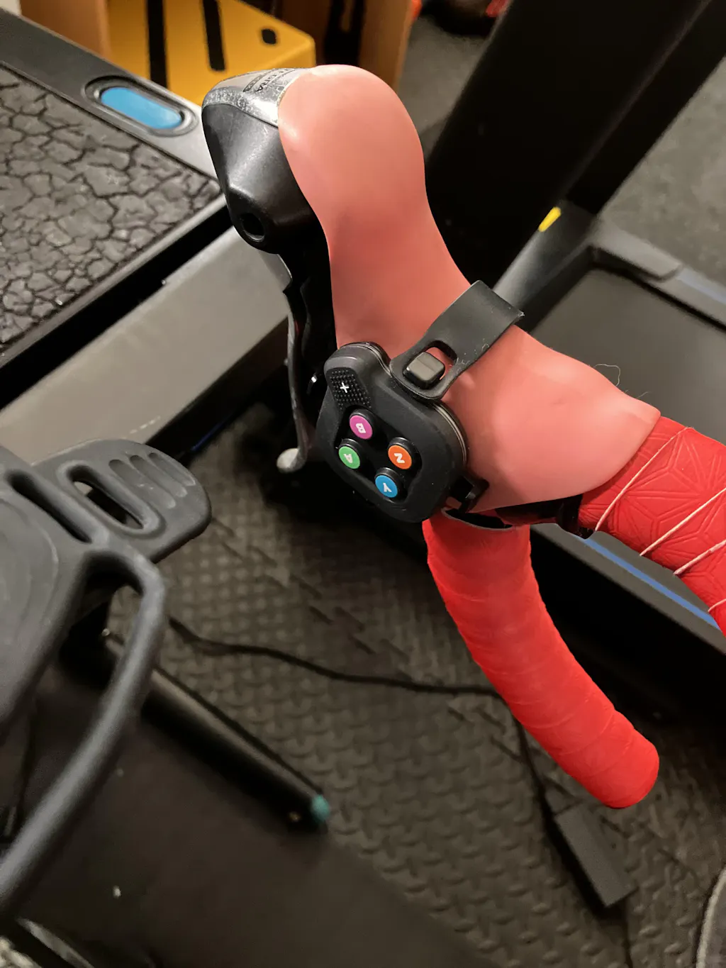 Zwift Click completes your indoor setup and puts full control of Zwift at your fingertips. Shift gears, steer, navigate menus, and give Ride Ons - all from your handlebars.